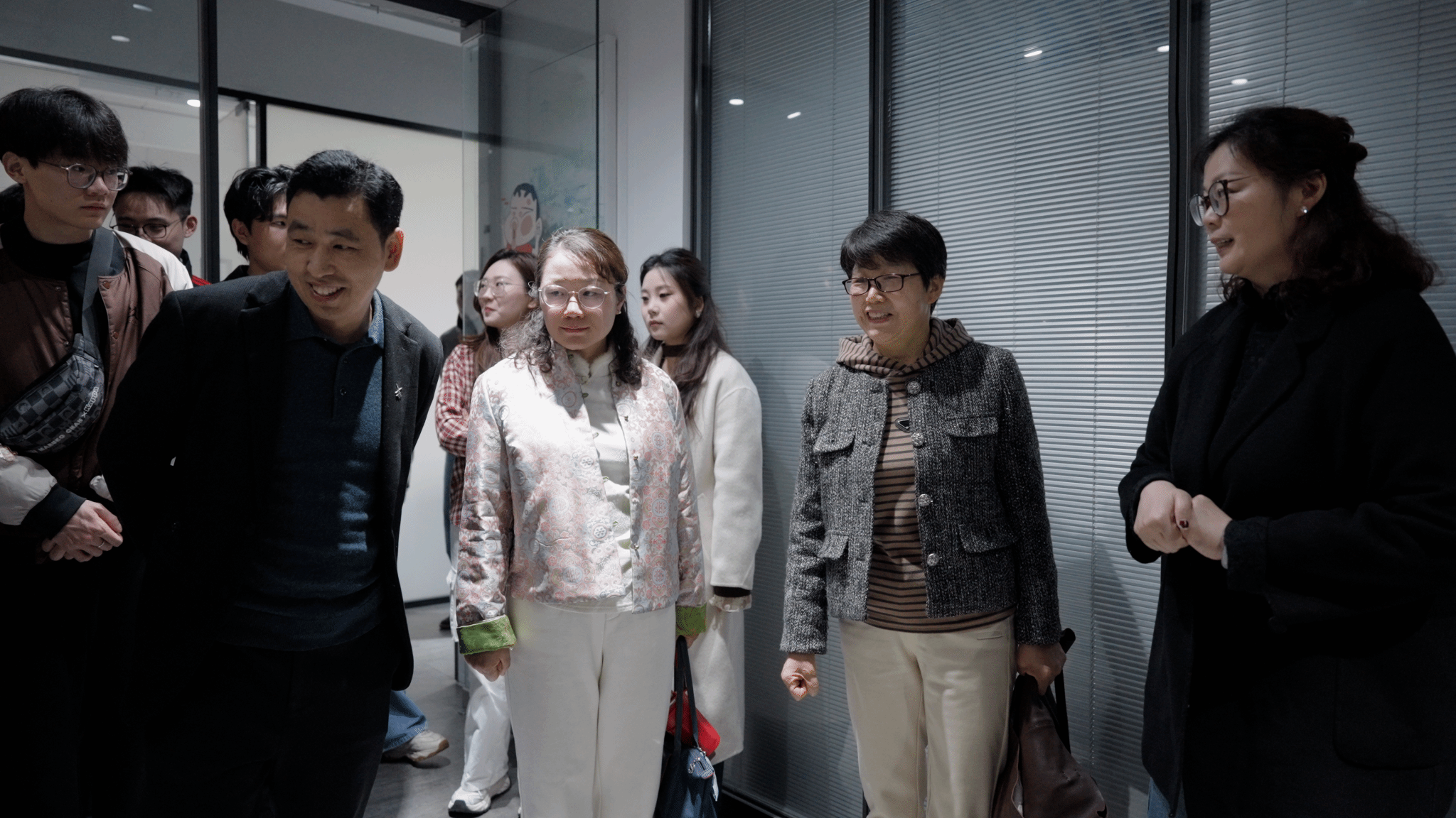集团总经理牛震平带领大家参观了集团整个运营区域,包括直播间、化妆区、办公区域等核心场所,让大家直观感受集团的运营氛围与硬件设施,参观结束后,双方召开座谈交流会,会上牛震平详细介绍了集团的发展历程、企业文化内核与核心发展理念,以及重视人才、培养人才、成就人才的发展思路,让在场人员对集团的文化底蕴和发展格局有了全面深入的了解。同时,外事部副主任于洋表达了对我院优秀毕业生的殷切期许,希望更多具备扎实专业素养、良好职业素养的人才加入集团,携手助力文化事业高质量发展。