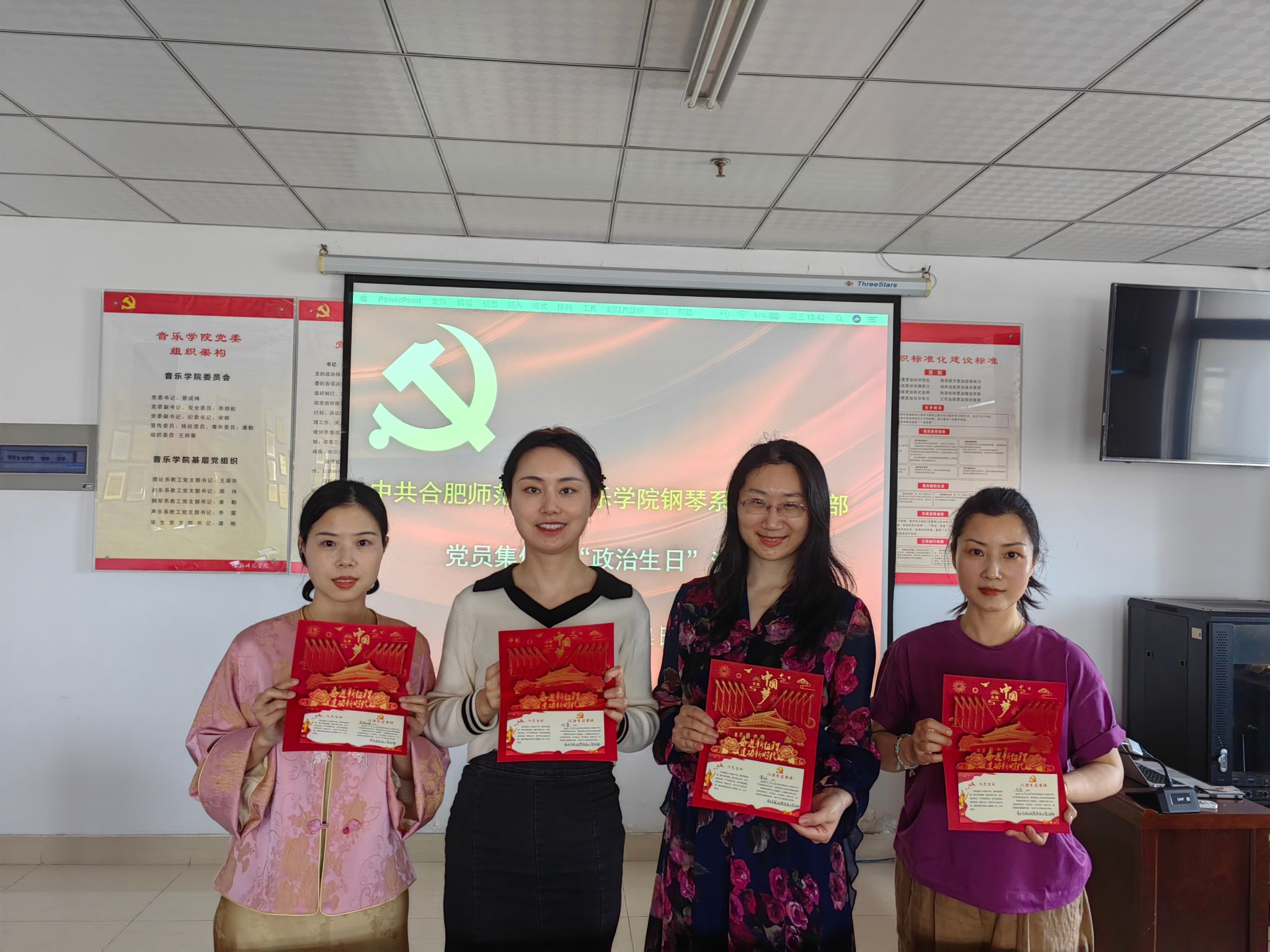按照学校党委的统一部署,为深入学习贯彻党的二十大精神,激发教师党员政治热情,强化党员政治身份认同感,进一步增强党员的凝聚力和归属感,唤醒党员的入党初心,2024年4月24日,太阳成集团tyc41183钢琴系教工党支部在行知楼1602会议室开展主题党日活动,为1月至5月加入中国共产党的教师党员集体过“政治生日”。会议由支部书记康勤主持,支部全体党员教师参加。