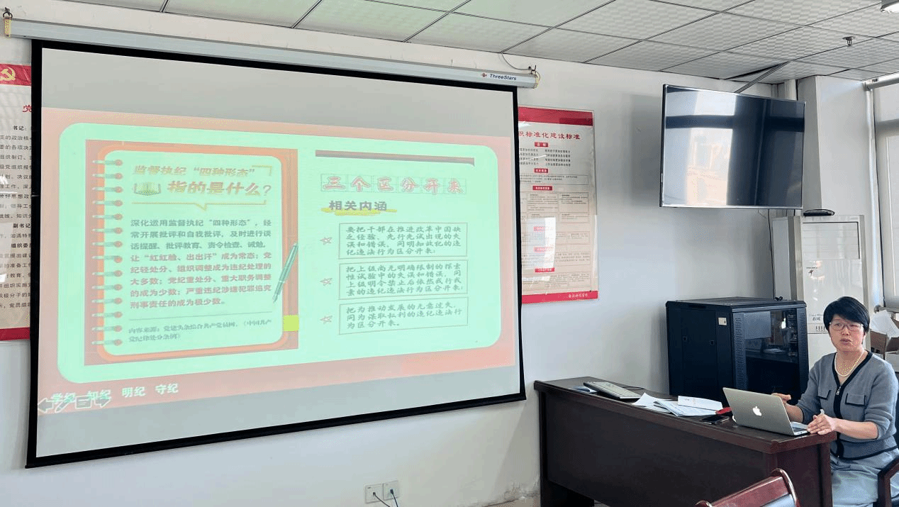 宋辉作点评发言。他表示蔡书记对《条例》的解读全面、具体,以理入情、案例丰富,感谢蔡书记为大家带来一堂精彩党课。同时,他对深入开展党纪学习教育提出了两点要求。一是支部要压紧压实责任,通过原原本本学、讲纪律党课、集中学习研讨、警示教育等途径全面深入推动党纪学习教育,“规定动作”做到位,“自选动作”做出彩。二是党员要深入学、常思考、多交流,严守红线意识和底线意识。