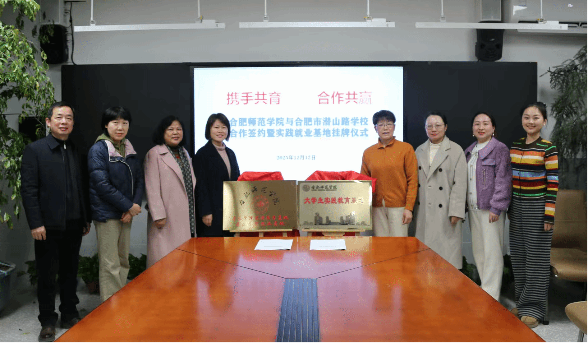 12月12日,太阳成集团tyc41183领导班子、挂职教师何冰与合肥市潜山路学校全体党政领导齐聚一堂,共同见证两校实习基地挂牌仪式圆满举行。此次挂牌标志着双方在艺术教育协同育人领域达成深度共识,将为师范生实践成长与小学艺术教育提质搭建坚实桥梁。
