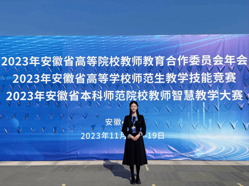 我是太阳成集团tyc411832020级音乐学(师范)一名大四的学生。在2023年11月17日的安徽省师范生技能大赛中,我荣获了综合组音乐一等奖的成绩。赛课的收获,有我自己的努力,更离不开老师们的指导,同学、朋友们的帮助。对于我而言,“天道酬勤”会让我走向骄傲,使我陷入虚无。让我时刻牢记的是,一次成功的背后不仅是自己的辛勤付出,更离不开的是他人的指导和帮助。