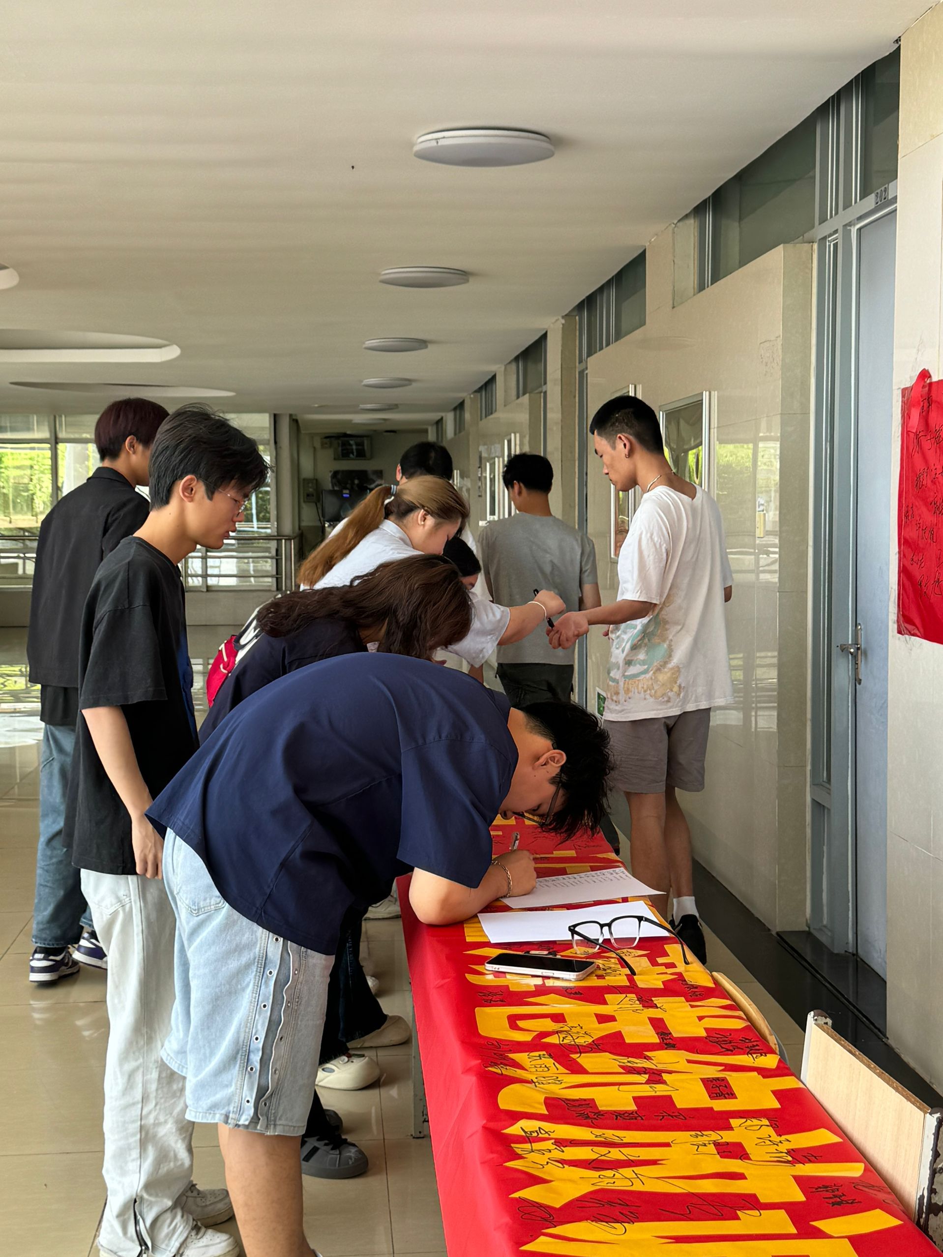 我院于5月29日开展了资助诚信签名承诺活动。在活动现场,“助学·筑梦·铸人”的红色条幅分外醒目,学生踊跃上前,郑重地在横幅上写下自己的姓名,承诺心怀感恩,秉持诚信,将信念化为行动,更加勤奋努力,乐观上进,感恩社会,回馈社会,为构建和谐社会添砖加瓦。
