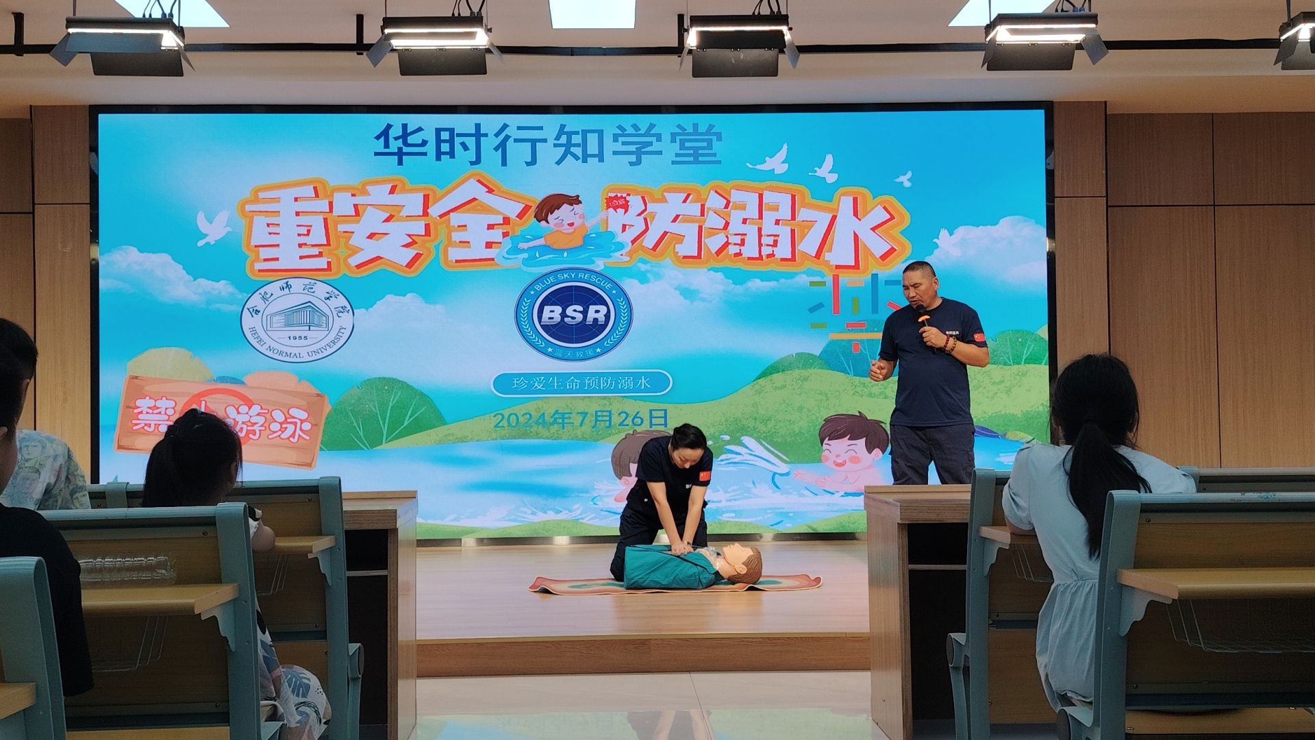 7月26日,tyc41183太阳成集团“华时行知学堂”联合蓝天救援队在华时学校举办“重安全,防溺水”安全教育讲座,向当地的留守儿童宣讲防溺水安全知识,引导学生进一步提高安全意识和自救技能。