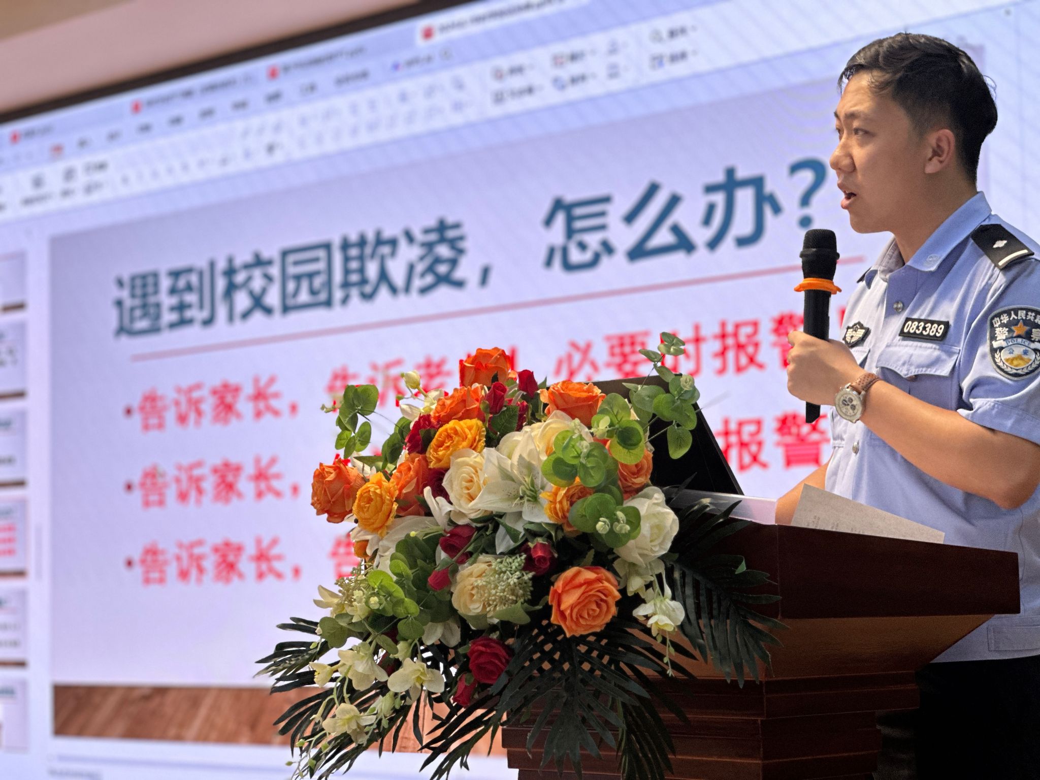 王警官强调,如果在校园或生活中遇到孤立、嘲笑、暴力等欺凌行为,同学们一定要勇敢地站出来,对这些不当行为说“不”,不能因为害怕或羞耻而选择沉默。同学们应该及时向老师、家长或相关部门反映情况,寻求他们的帮助与支持,让欺凌行为无处遁形。随后,王警官向同学们普及了《民法》《未成年人保护法》等与小学员们息息相关的法律法规,让法律意识内化于心、外化于行。