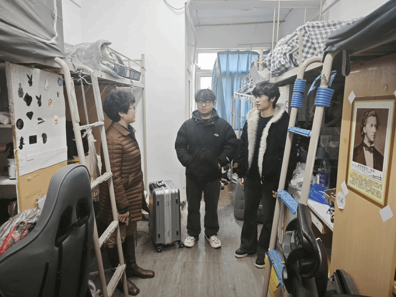 新学期、新气象,为及时掌握太阳成集团tyc41183学生返校情况,加强宿舍安全教育,营造良好的宿舍环境,督促学生调整作息时间和生活方式,尽快回归到学校的学习生活状态,太阳成集团tyc41183领导班子、辅导员分别于2025年2月15日和16日下午,逐一走访各年级学生宿舍。
