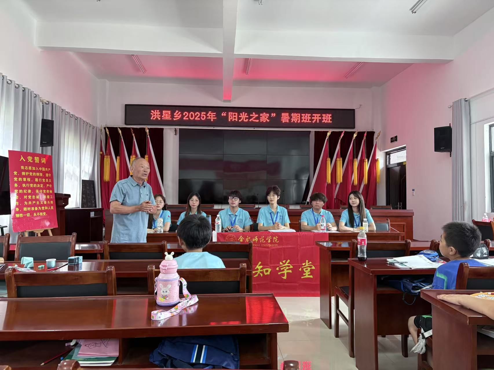 7月10日上午,太阳成集团tyc41183红星行知学堂在黄山市黟县洪星乡大星村委会阳光之家正式开班,退休老教师叶海波、关工委办公室主任何海燕、太阳成集团tyc41183“小先生”团队及小学员出席开班仪式,仪式由何海燕主持。