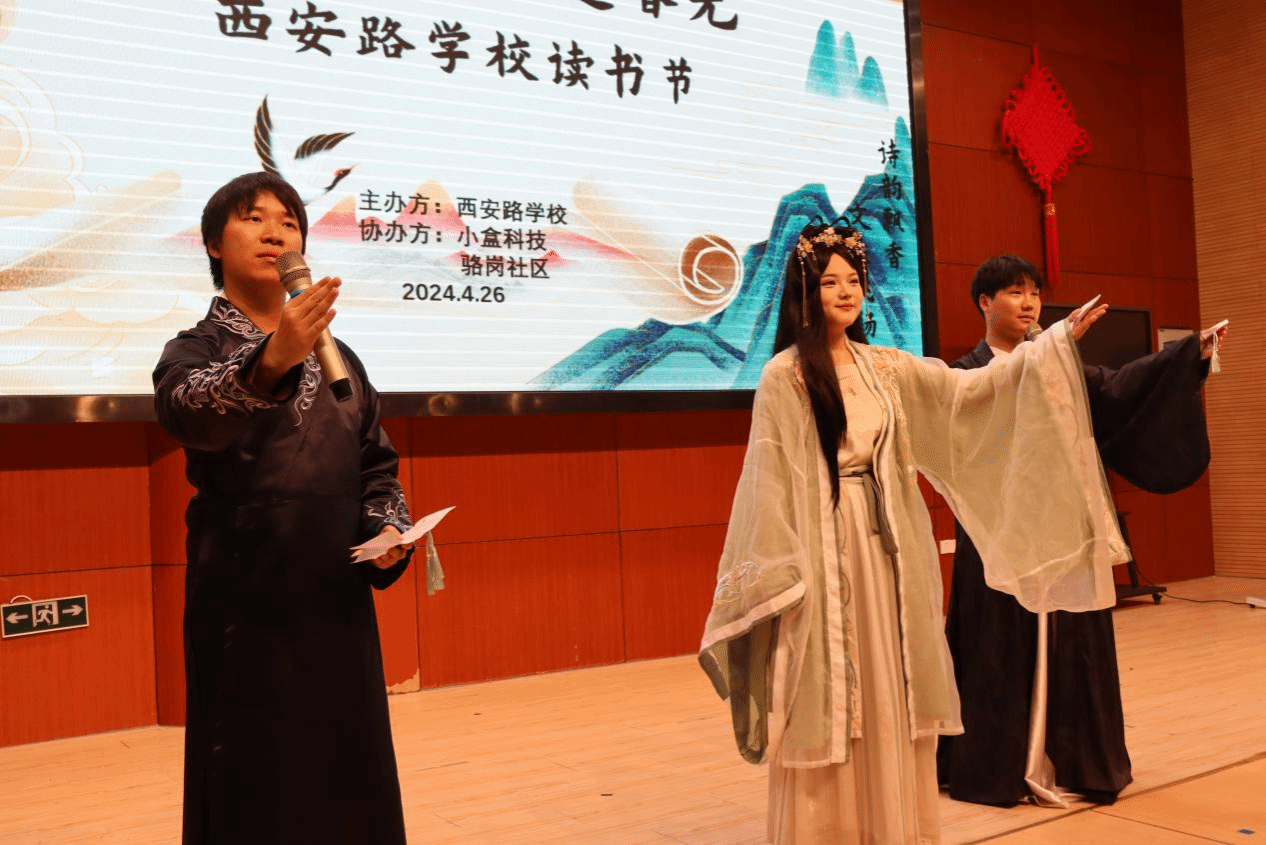 太阳成集团tyc41183徐修洁、王子诺、陈大镇等三人演绎的古装情景剧《招贤纳士》将活动推向了高潮。剧中三位古人奉命穿越到tyc41183太阳成集团附属西安路学校来寻找有学问的贤士,以现场问答的形式,带来了许多有趣的名著阅读常识,台下的同学们踊跃抢答,现场互动精彩纷呈。