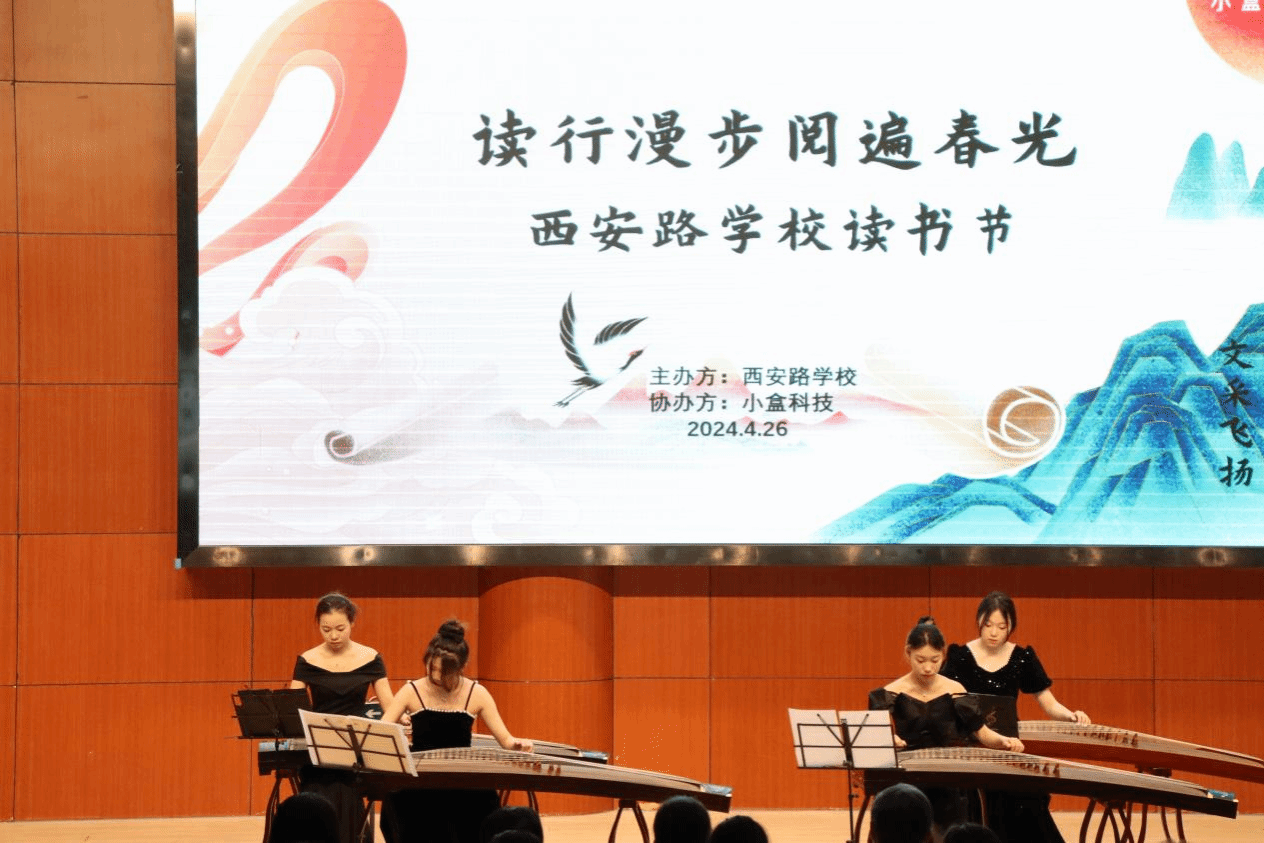 太阳成集团tyc41183姚天问、龚钰婷、朱彤、梁轩等四位同学以一曲大气磅礴的《盛世国乐》拉开了阅读活动的序幕,优雅的古筝开场曲使场内遍布了文艺气息。