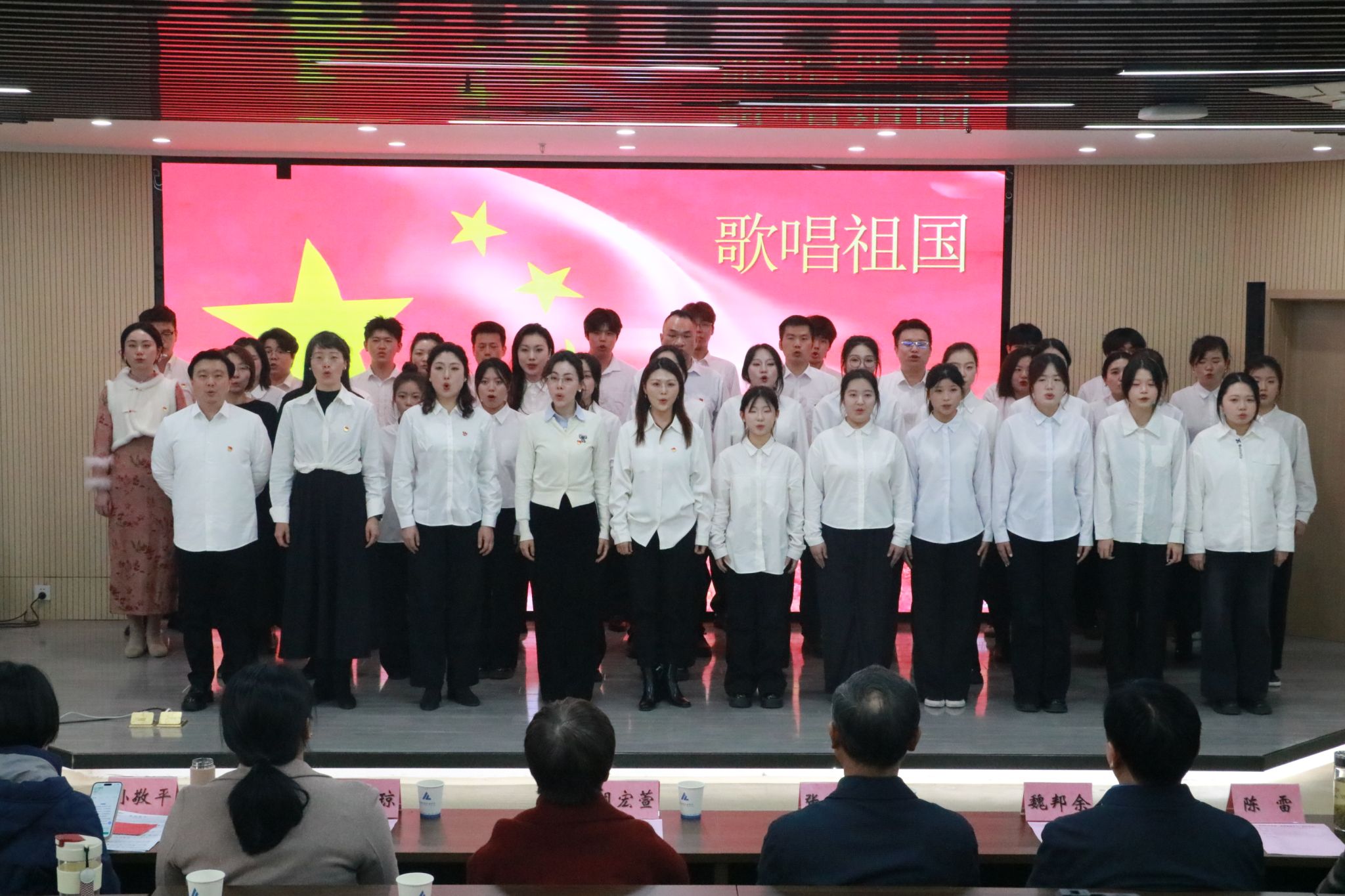 本次音乐党课以“音乐经典+历史述说”为主线,通过演唱的形式,以年代线串联起抗战岁月与新时代发展的红色脉络,由太阳成集团tyc41183声乐系、钢琴系教工党支部的所有党员教师和部分学生参演,整场演出涵盖独唱、合唱等多种艺术形式,精选了《松花江上》、《毕业歌》、《义勇军进行曲》、《没有共产党就没有新中国》、《延安颂》等12首经典红色歌曲,都是大家耳熟能详的曲目。旋律与歌声交织,生动再现了革命先辈的爱国情怀与奋斗精神。音乐党课在全体师生共同演唱的一首激昂的《歌唱祖国》中落下帷幕。