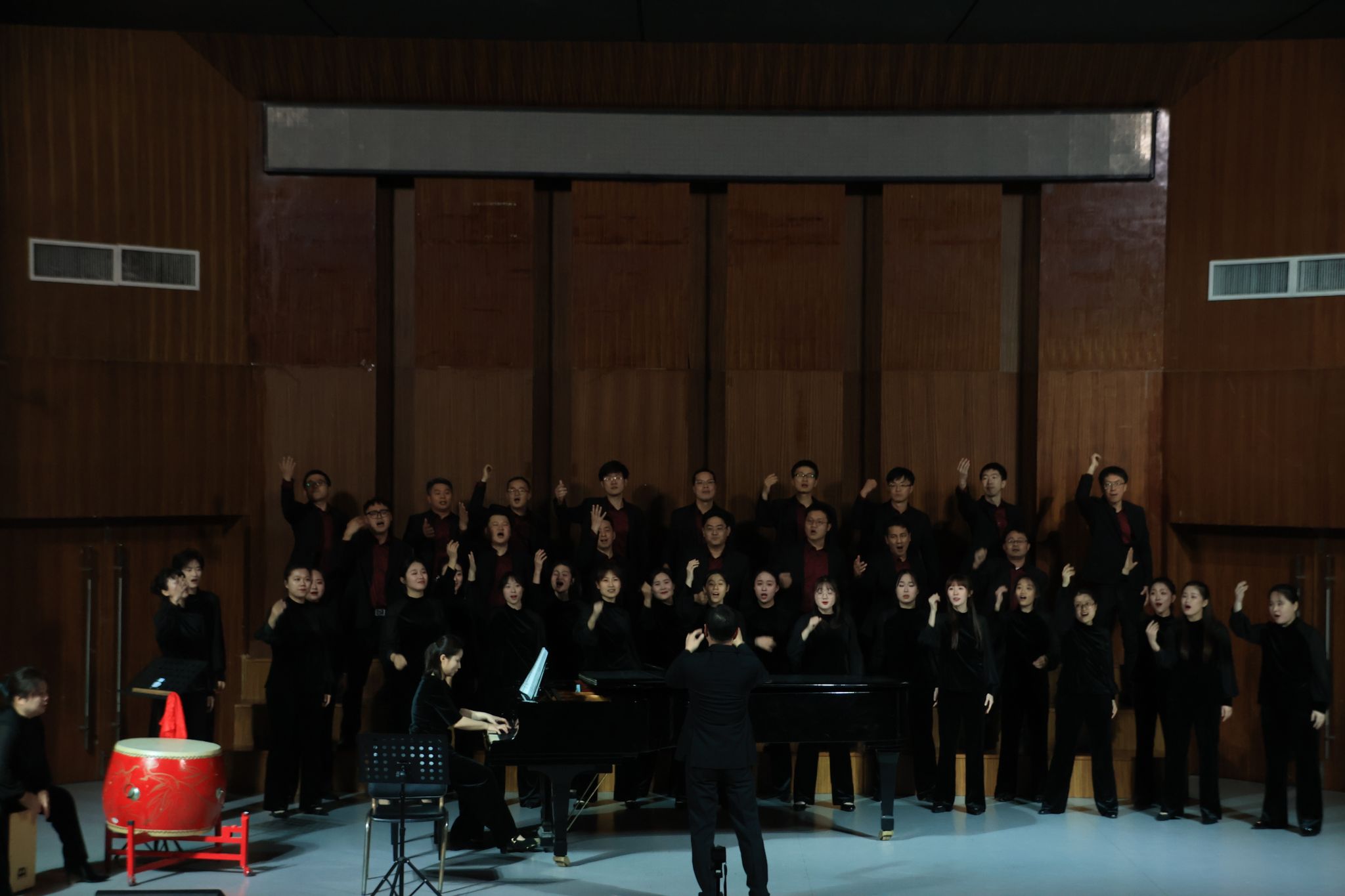 音乐会以“国风古韵”与“西乐华章”上下两个篇章展开,融汇中西,贯通古今。上篇“国风古韵”在安徽民歌联唱《凤阳变成金凤凰》中拉开帷幕,声声皖组合的演唱与钢琴伴奏相得益彰,充满浓郁地方风情。随后,民乐五重奏《江南风韵》宛转悠扬,箜篌独奏《箜篌引》空灵深邃,舞蹈《榫卯》则以刚柔并济的舞姿诠释传统智慧,尽显中华优秀传统文化的隽永魅力。下篇“西乐华章”则展现了音乐的多元与融合。男高音独唱《念奴娇·赤壁怀古》豪情万丈,室内乐《全新天地》《如愿》旋律动人。男中音独唱《不忘初心》深情真挚,男高音咏叹调《今夜无人入睡》荡气回肠。音乐会在合肥市如歌合唱团带来的合唱《燕歌行》《月之火舞》中达到高潮,精湛的演绎、丰富的艺术形式赢得了全场经久不息的热烈掌声。